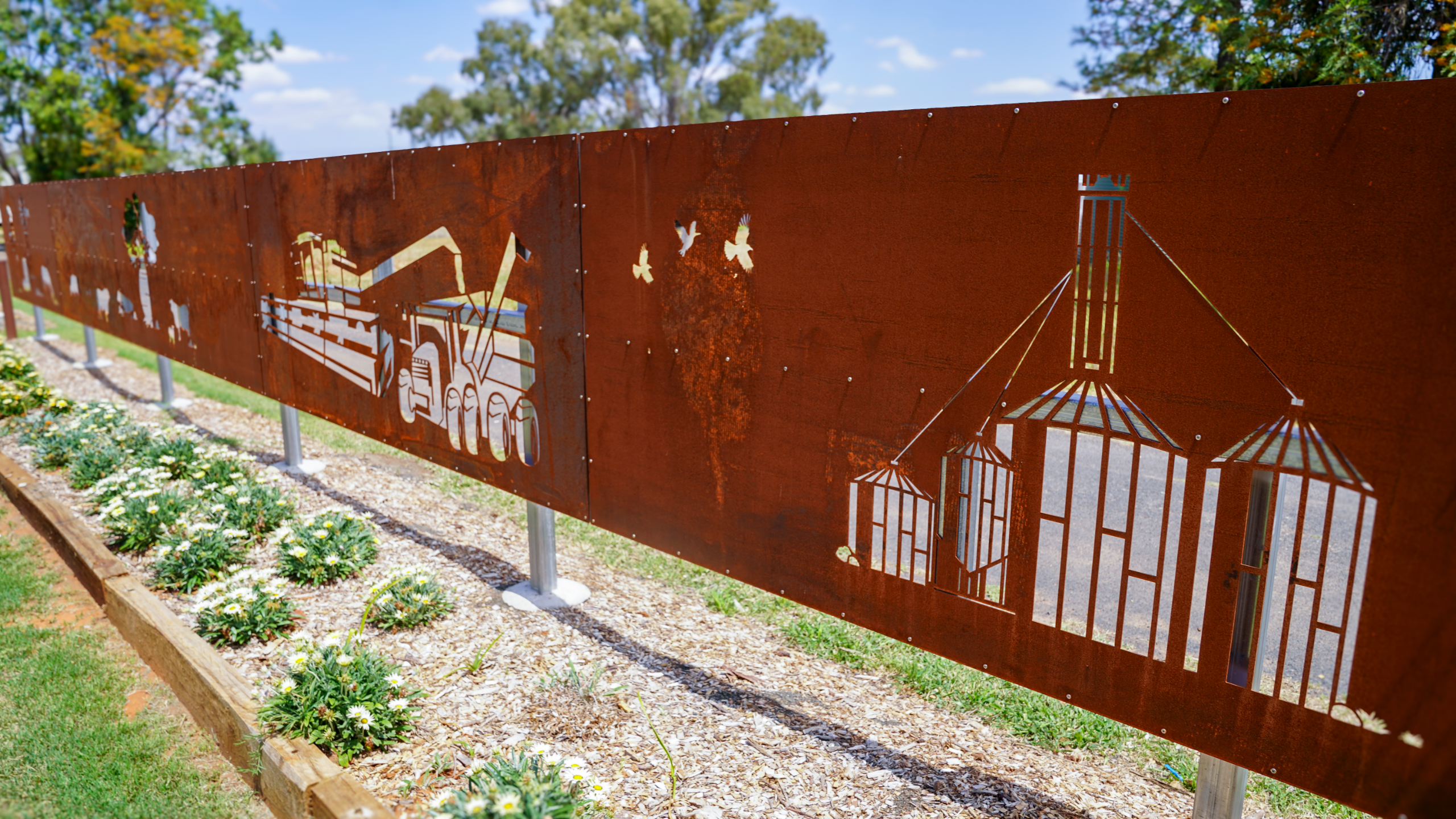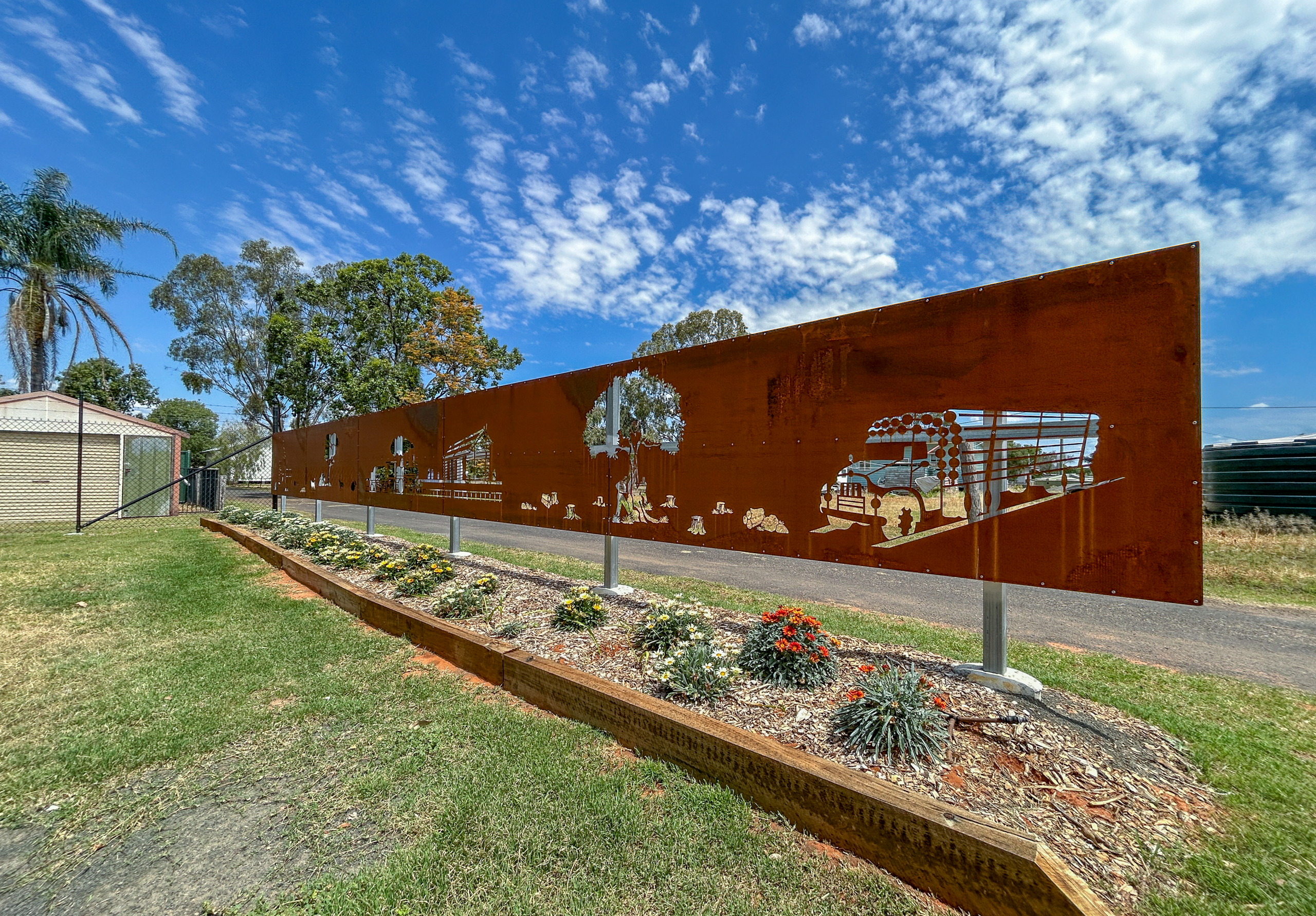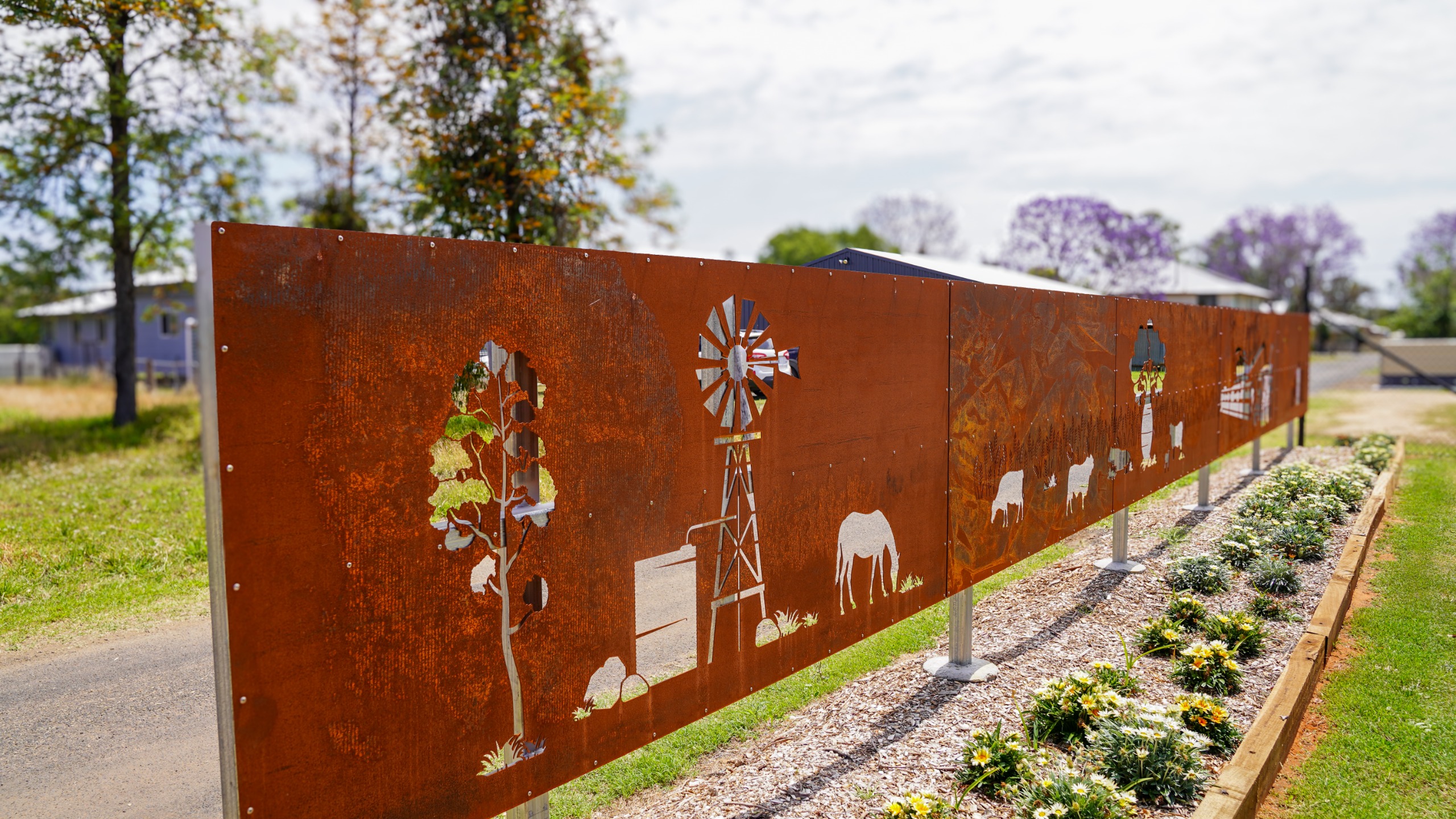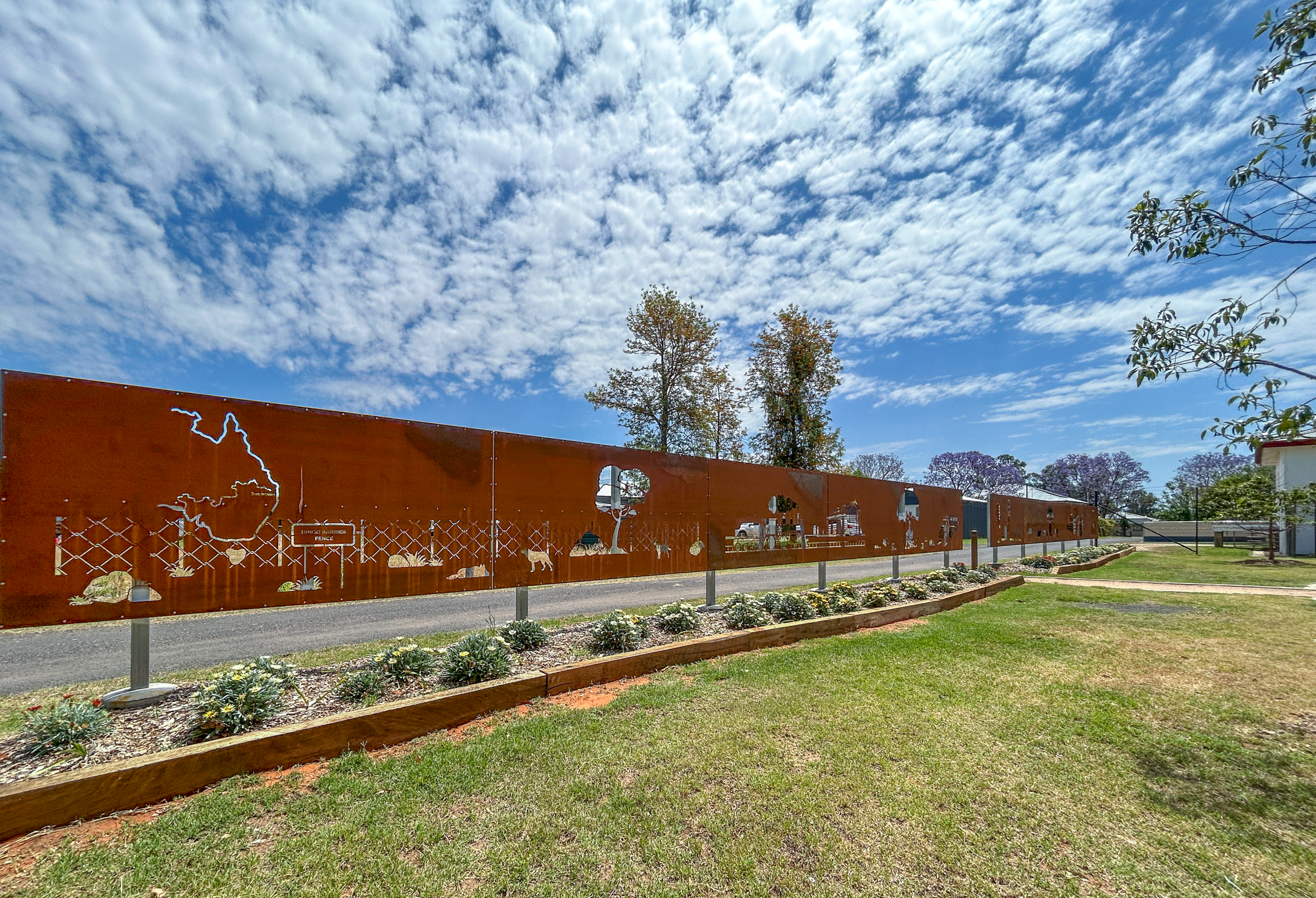 Western Downs Regional Council and Dalby State High School (DSHS) have teamed up to reimagine 30m of corten steel panels from simple fencing to a functional artwork. The design of the panels has been formulated based on feedback from the Jandowae community, and local schools.